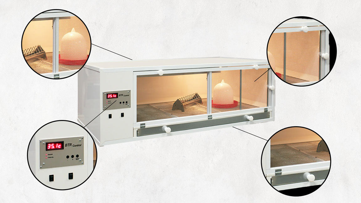 Another trend-setting innovation by HEKA: these brooder boxes are completely made of water-resistant and easy-to-clean plastic; the temperature is regulated by a precise processor control unit with a digital display.